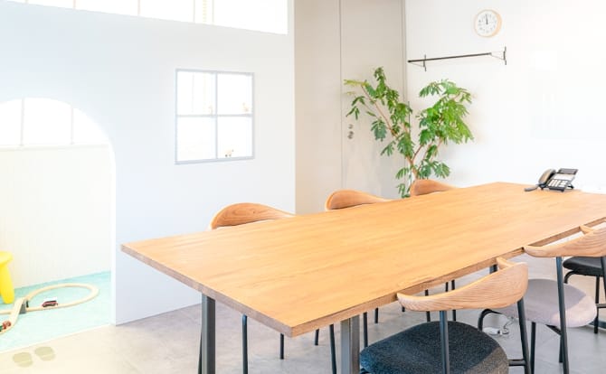 相談スペースリラックスしてご相談いただける環境づくりにもこだわっています。ビル内のワンフロアがすべて当事務所となっており、プライバシーに配慮したフロア配置です。またお子さま連れでもご利用いただけるよう、キッズルームも完備しています。